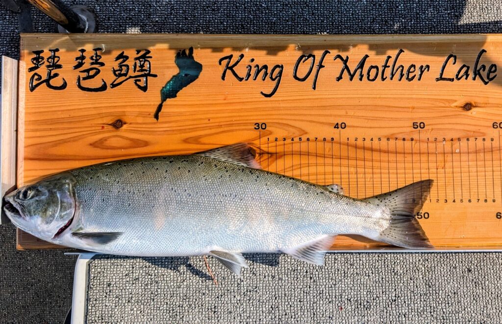 ビワマス(琵琶鱒、学名:Oncorhynchus biwaensis(オンコリンカス・ビ ワエンシス)、英: Biwa trout)は、サケ目サケ科サケ属に属する淡水魚の一種である。日本の琵琶湖(滋賀県)にのみ自然分布する固有種で、従来サクラマスの亜種とされてきたが、現在ではそれに近縁なサクラマス群の独立種であるとされる。産卵期には大雨の日に群れをなして河川を遡上することから、アメノウオ(雨の魚、鯇、鰀、江鮭)とも呼ばれます。その貴重さなどから、「琵琶湖の宝石」とも呼ばれる。
