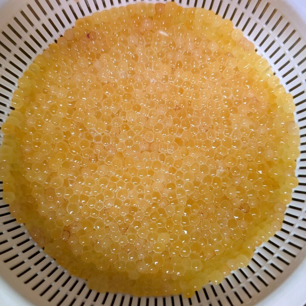イクラよりもやや小ぶりの卵は醤油漬や塩漬等にしますが、海産サケ・マス類のイクラよりも生臭さが少なく美味。ほとんど流通していないことから珍味としても扱われています。この他には「はらこ飯」と同様の「アメノウオご飯」や、イクラ丼と同様の丼物にします。